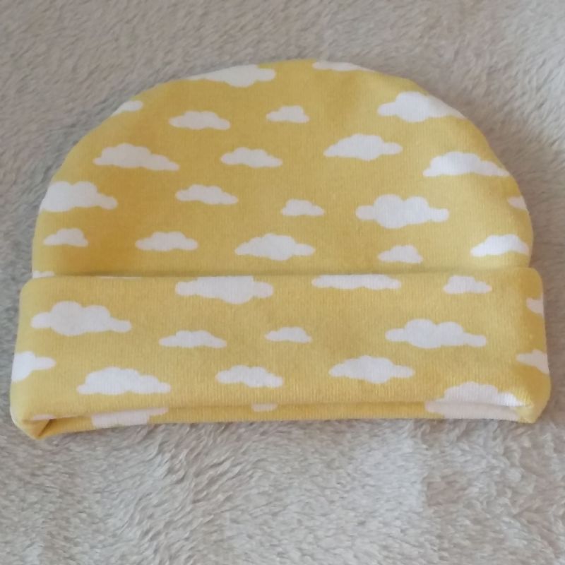 Yellow Beanie hat with White Clouds, 2-3lb